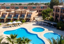Occupying a beach front location, Club Paradisio is situated in El Gouna just minutes away from the 18 hole golf course Club House. It offers 3 swimming pools, a fitness centre and a retail shopping arcade. All rooms at Club Paradisio feature a balcony overlooking the pool, sea and lush gardens. Each one offers a flat-screen TV, a minibar and a telephone. The suite includes a separate living room and a dining area. There is a wide choice of culinary delights at Club Paradisio such as Marco Polo Restaurant that serves Egyptian Cuisine to Morgan that offers sea food. Cocktails and mocktails are served at the pool and main lobby bar. Club Paradiso offers an impressive select ion of sports activities such snorkeling, diving, beach volley ball and tennis. Diving lessons are also available through the club academies. Downtown ElGouna is 1 km from Club Paradisio. Hurghada’s International Airport is 20 km away. Free private parking is possible on site.