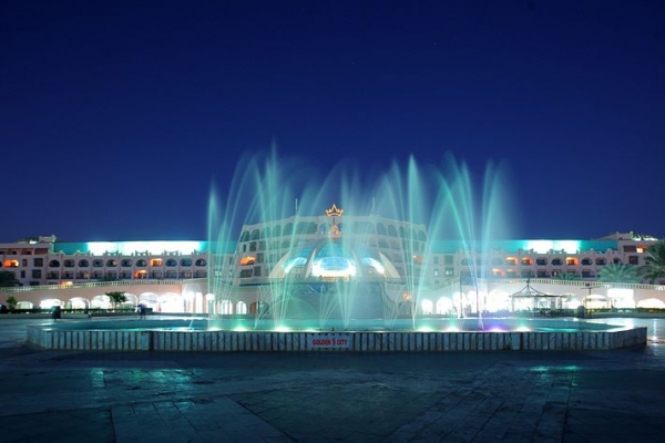 Exclusively for couples and families, this luxurious 5-star hotel in Hurghada features a free aqua park with 4 swimming pools, an expansive spa and a private beach. It also offers a gym, a tennis court, billiard and minigolf. The colourful guest rooms at the Paradise Golden 5 Hotel and Beach Resort are furnished with rich fabrics and Arabic details. They have a private balcony, satellite TV and a stylish, marble bathroom complete with soaps and lotions. Relaxation options at the Paradise Golden 5 include a Turkish hammam, a hot tub and sauna. There is also a modern fitness centre with cardiovascular equipment. The Red Sea Restaurant serves international dishes, while the Bella Vista Restaurant specializes in authentic Italian cuisine. The pool bar serves exotic juices and hot and cold snacks. Free Wi-Fi can be accessed in public areas. Hurghada Airport is 15 minutes from the resort by car. The hotel features a motorized train every 45 minutes to escort the guests between all Golden 5 hotels.