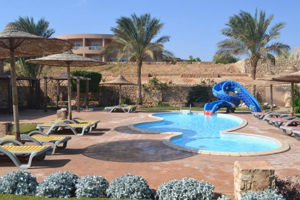 On a private Gulf of Suez beach, this 4-star hotel provides air-conditioned rooms with a balcony. Its outdoor pool is surrounded by cushioned lounge chairs. Snorkeling is possible at the beach. The spacious rooms are decorated with muted colors. Each room has a sofa bed and a satellite TV. A minibar and tea/coffee-making facilities are provided. A hairdryer is available in the bathroom. Guests can play a game of volleyball at the beach or ping-pong in the game room. The Romance Hotel also has a modern gym. There is a playground and a pool for younger guests. A limo transportation service to Zafarana City and Ain Sokhna Port can be arranged. Cairo Airport is 112 miles away.
